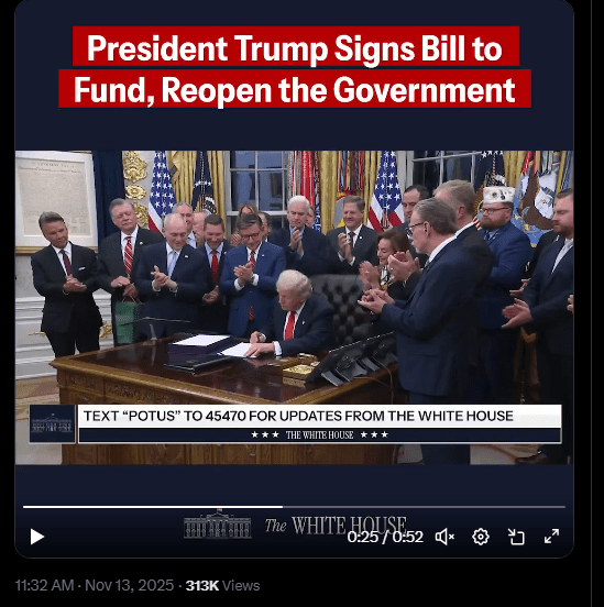 BREAKING – Crypto Markets Cheer As Trump Signs Bill Ending Gov’t Shutdown