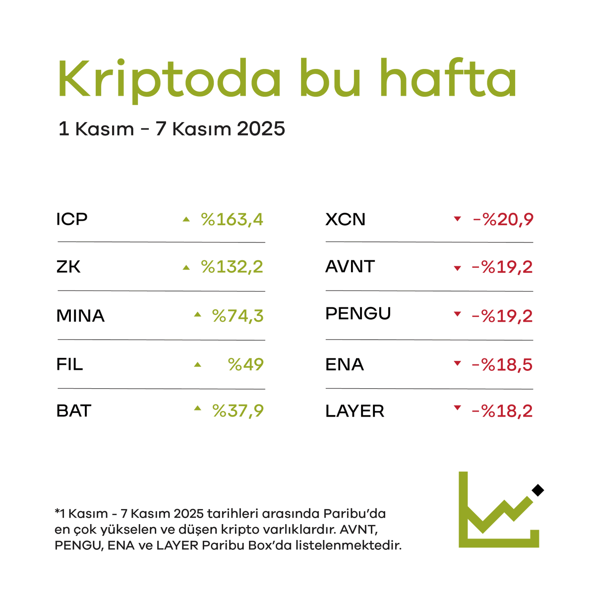 Paribu'da keşfedin: Bu haftanın en çok yükselen ve düşenleri.