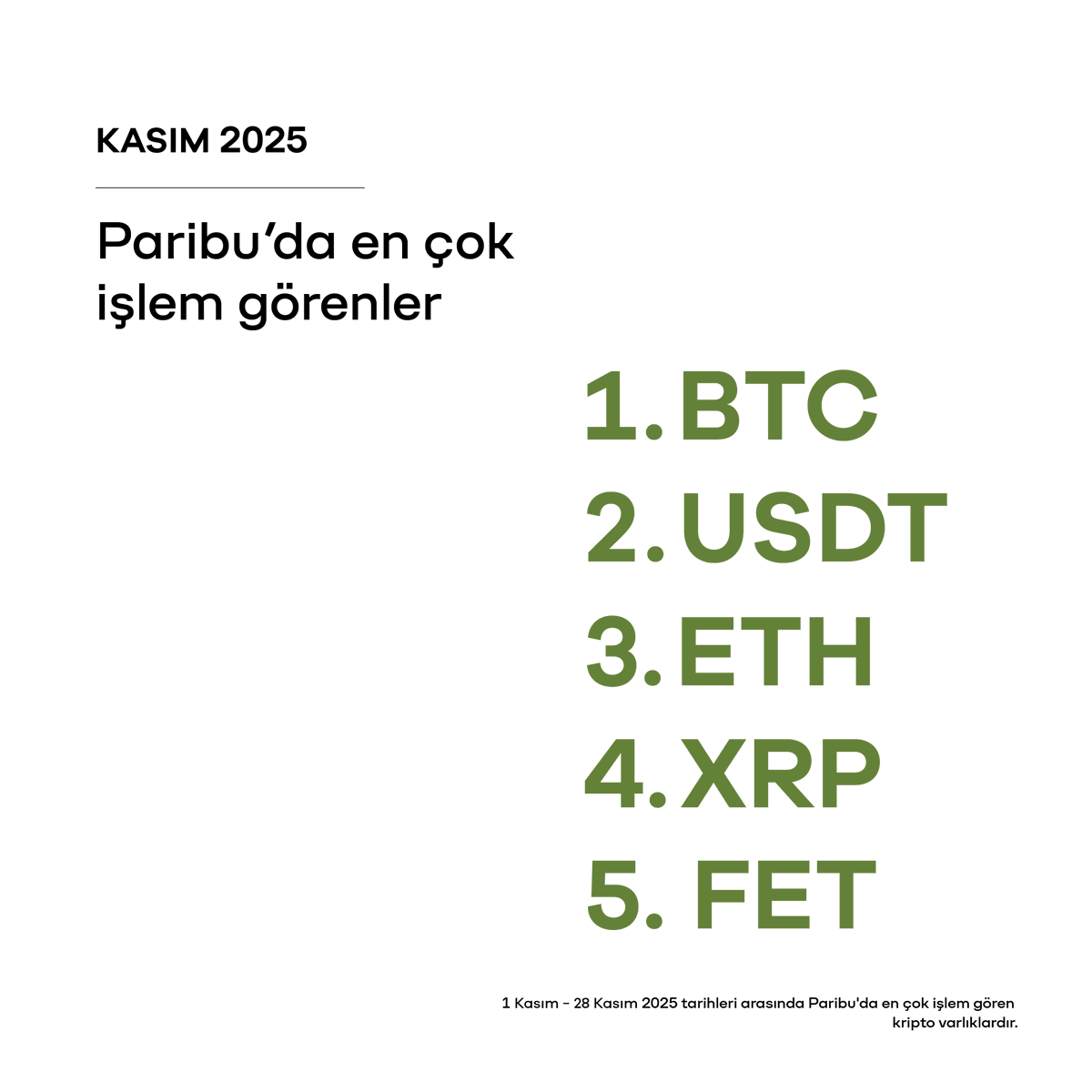 Paribu’da son bir ayın en çok işlem gören kripto varlıkları.