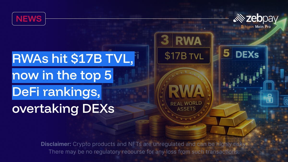 Real‑world assets (RWAs) reached $17B TVL in late 2025, overtaking DEXs to claim fifth place in DeFi rankings behind lending.
