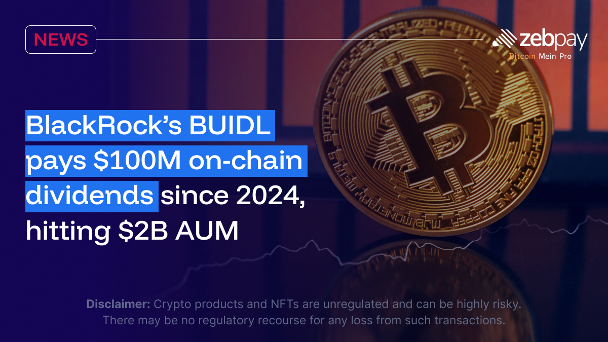 BlackRock’s tokenized money market fund BUIDL, backed by US Treasurys, has distributed over $100M in on-chain dividends since March 2024.