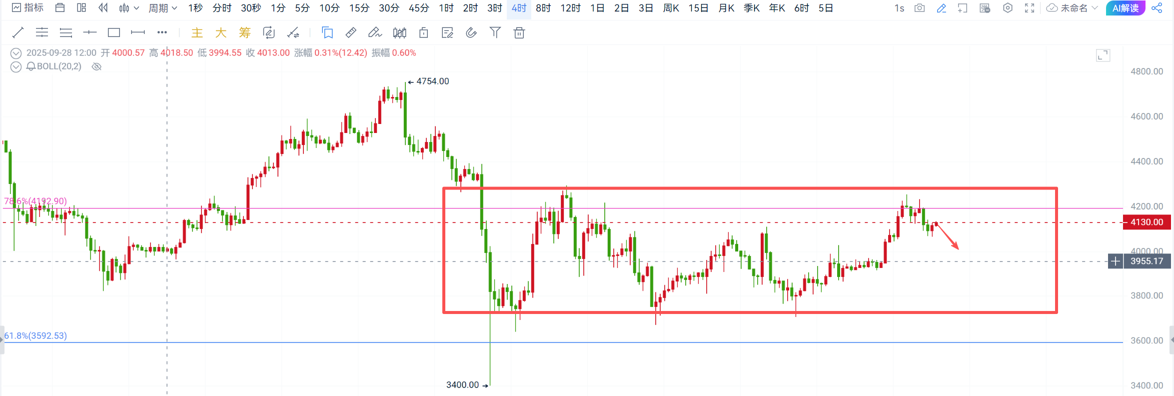 现价以太4130-4160做空,目标4050-4000,4220上方损;
