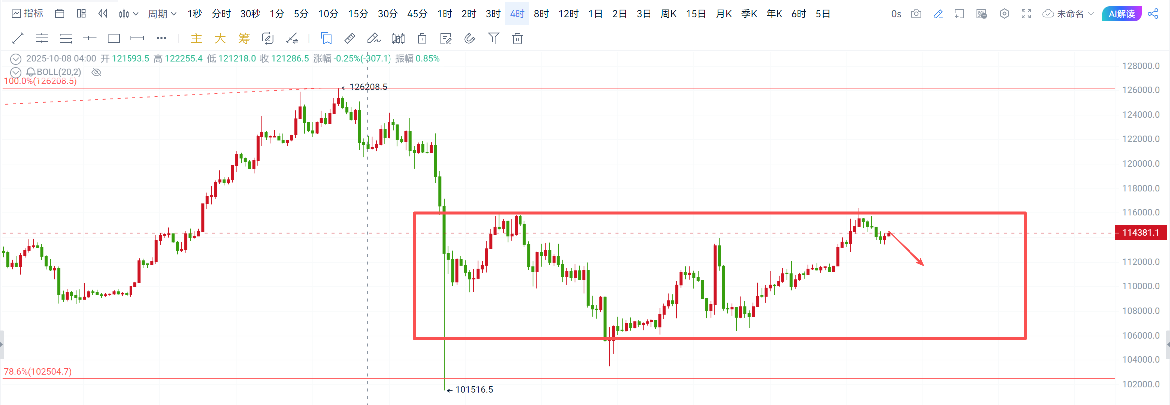 4小时级别看,大饼上行至前面反弹最高位116000附近测压回落,未能形成有效破位,支撑依旧看113500-114000,目前测试有效,以太4小时也是上行至前面反弹最高位4270附近,也是未能走出上破趋势,支撑依旧看4080-4100,目前测试也是有效的;