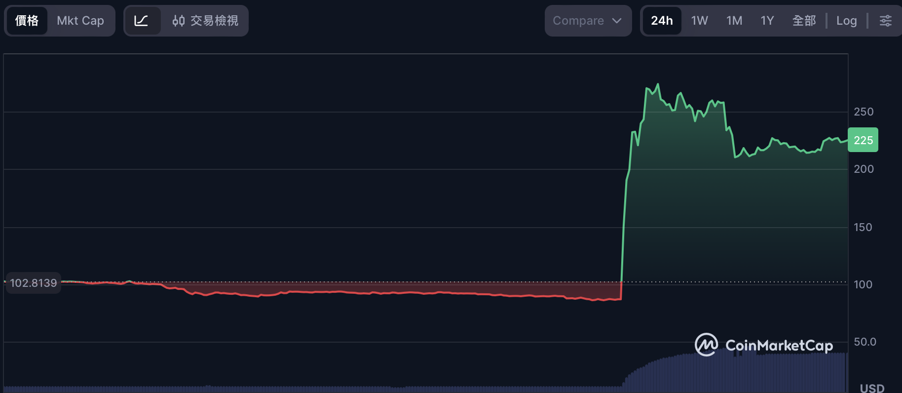 GIGGLE 日內暴漲約 120%,現報 226 美元。
