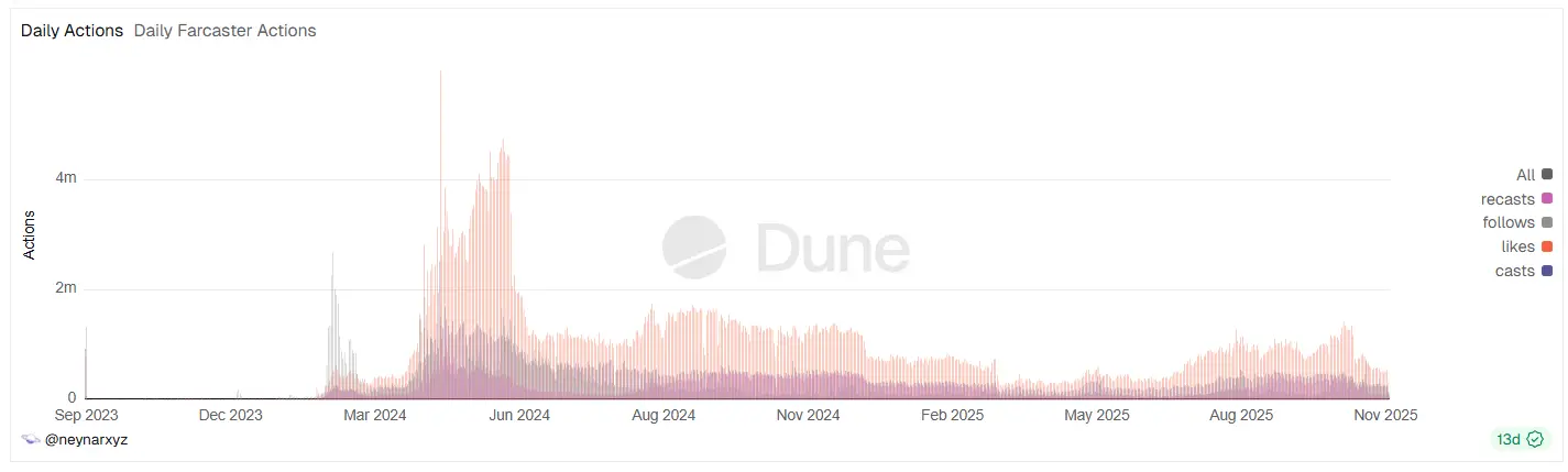 因此, Farcaster 的这次转型决定采取务实的选择,不再追求纯粹的社交叙事,而是将资源押注到增长强劲的钱包功能上: 先使用工具(钱包),再沉淀网络(协议) 。