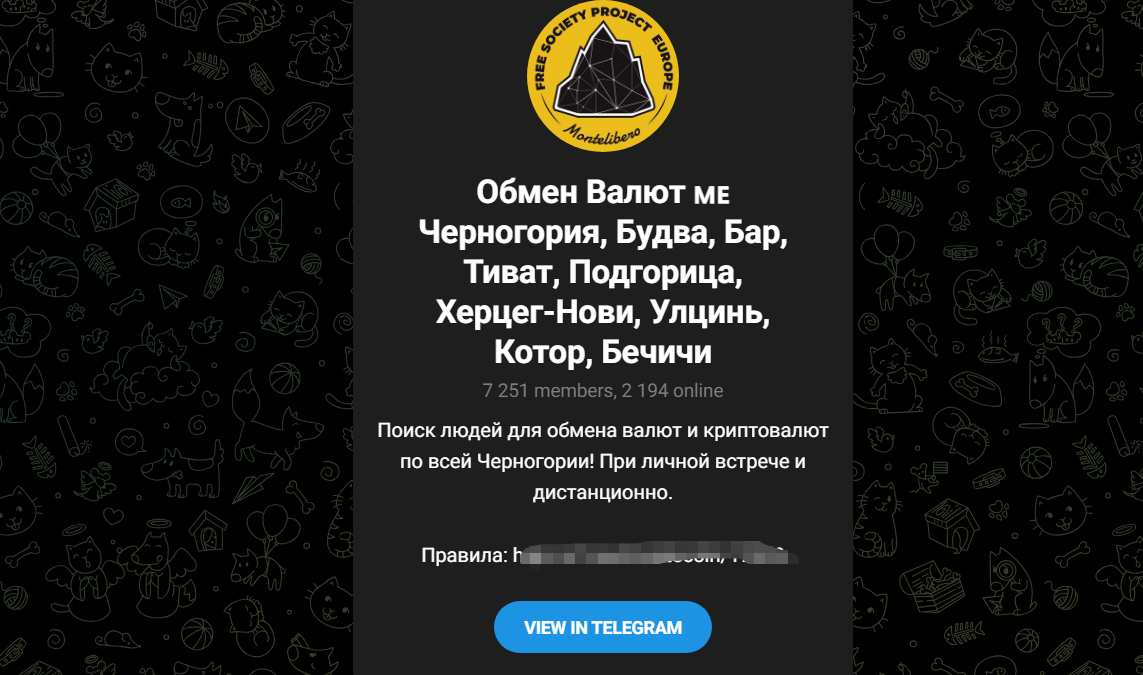 一个名为“Обмен Валют Montenegro”(黑山货币兑换)的俄语Telegram群组拥有超过7000名成员,专门从事加密货币与现金的直接兑换。