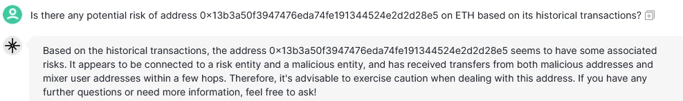 此处可以推断, Scopechat 的风险判别为识别和提示与恶意地址发生过交互的情况,但通常来讲交互若已发生,被盗事件应也已发生,意义不大。