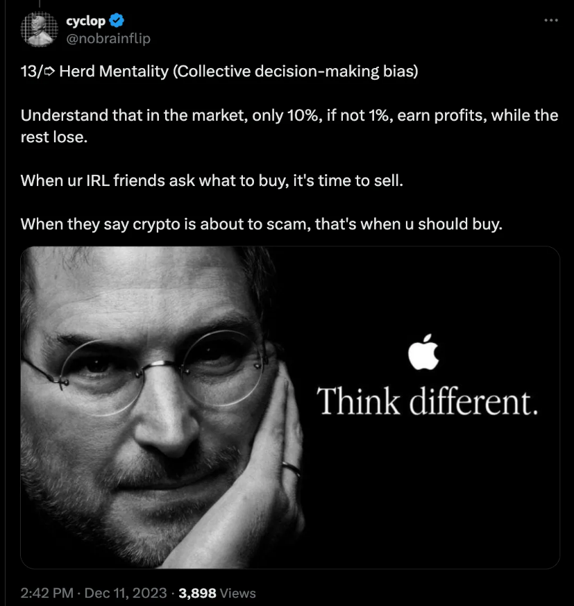 這並不容易,但這種心態是在加密貨幣的世界中將有利可圖的少數人與不成功的眾多人區分開來的關鍵。