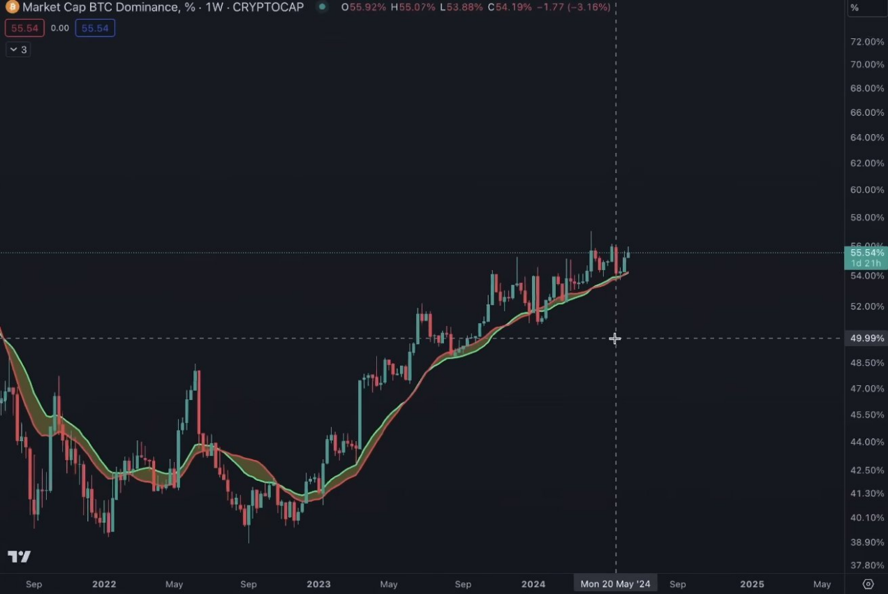 BTC 主導地位整體呈上升趨勢: