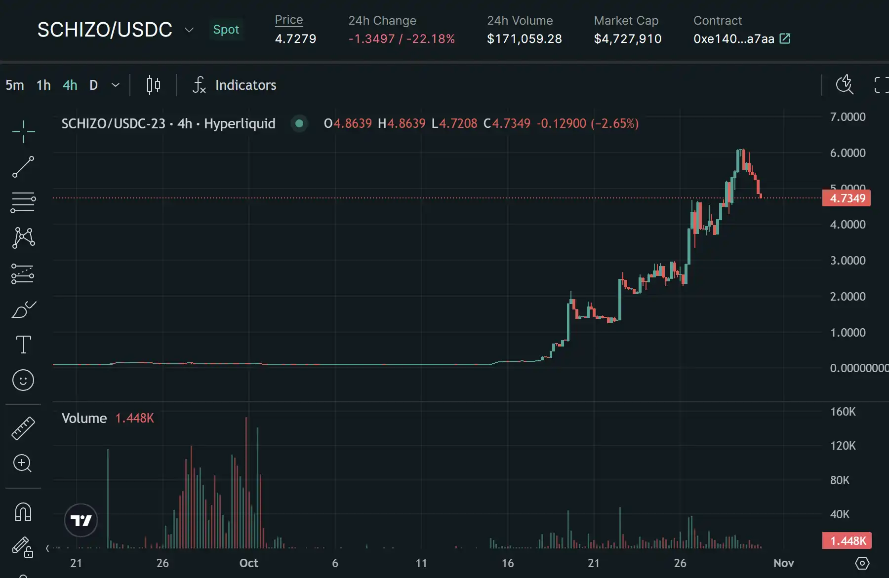 Hyperliquid 生态中以猫类别的 meme,以神秘猫为 meme 传播的热点,目前关注人数较少,但是价格走势强势。在 10 月 15 日开始上涨,目前已经实现 30 倍左右额涨幅,市值达到 692 万美元。