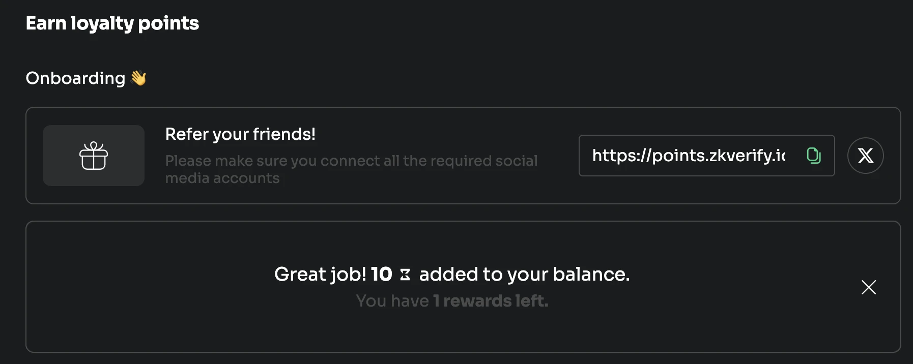 STEP 1. 进入交互链接并连接钱包,第一部分积分奖励为忠诚积分,包括邀请好友与每日签到。对于邀请好友,点击生成个人邀请链接后即可邀请好友获得积分。