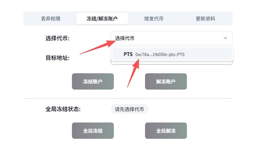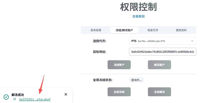 确定代币后,我们输入某个持仓地址(必须是持有该代币的地址,否则无法操作),点击冻结账户按钮