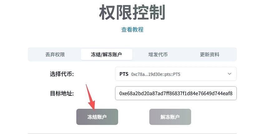 首先,我们打开代币的权限管理页面:https://sui.pandatool.org/control ,右上角连接钱包后,点击冻结/解冻账户按钮。