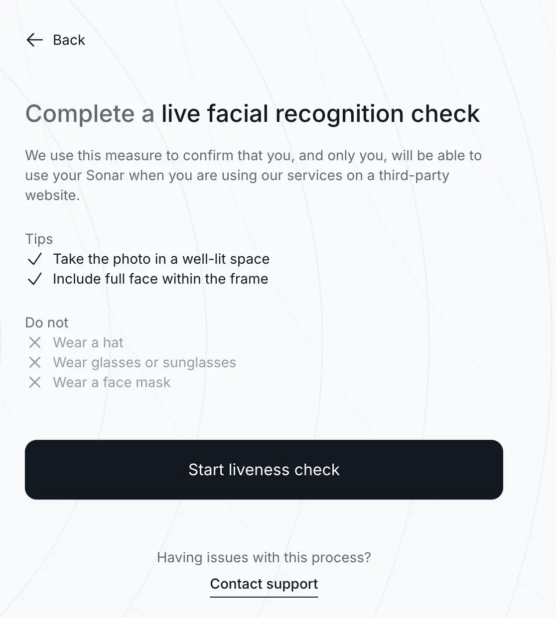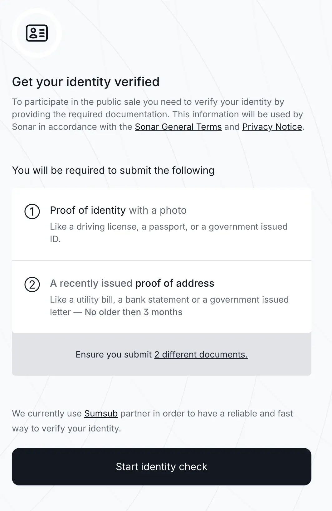 然后再点击「MANAGE ON SONAR」,这里就需要用到我们在步骤 1 里准备好的护照照片和银行账单了。