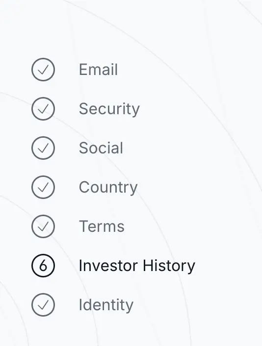 唯一复杂一些的就是第 6 步的 Investor History 问卷,需要选择投资经历、收入数额、资产数额、对锁仓的理解等等数十个问题,如果偏离太大会认证失败。这里尽量突出自己在投资方面经历丰富、年收入至少大于 20 万刀或净资产大于 100 万刀,对于专业问题不确定的可以找 AI 确认一下就行。