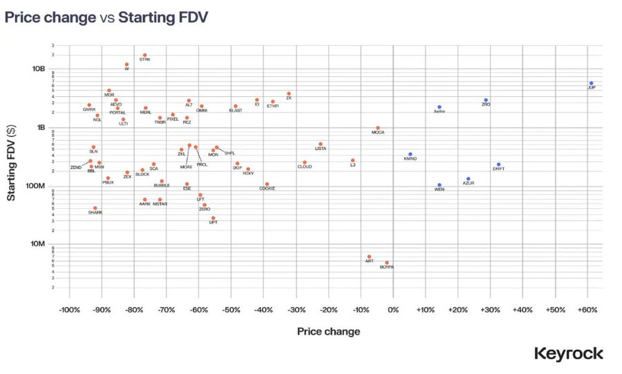 过高的 FDV 几乎注定带来抛压,因为没有任何空投能“对抗估值魔法”。2024 年,多数空投以极高 FDV 上线,并在两周内普遍回调 50–80%。一项 研究 覆盖 62 个空投后发现,88% 的代币在上线 15 天内出现下跌,原因往往是初始定价远高于真实价值。