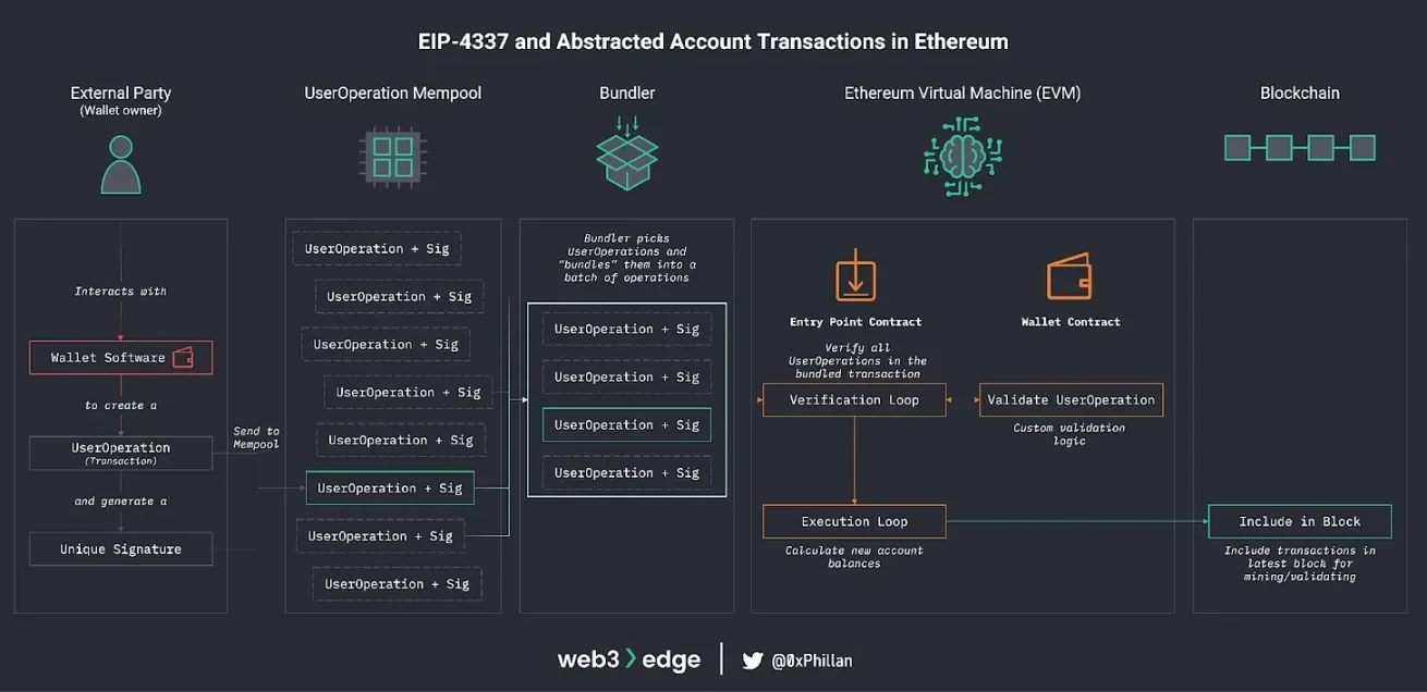 EIP-4337 改变了这种结构,使账户能够像智能合约一样运作。每个账户可以定义自己的签名验证逻辑,允许用户采用替代的签名方案,而无需修改整个网络。签名算法现在可以在账户级别替换,而不是通过协议范围的升级。