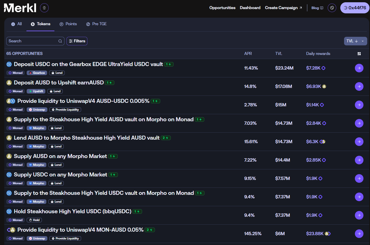 Merkl 上存稳定币挖 MON 代币一览