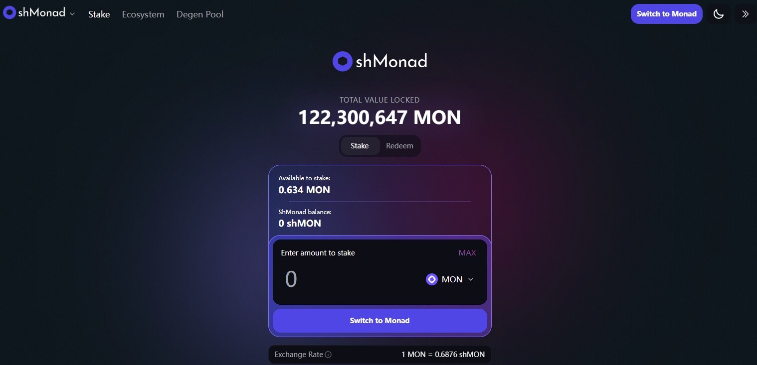 此外,用户可通过 shmonad.xyz/points 查看积分赚钱情况(暂未上线)。