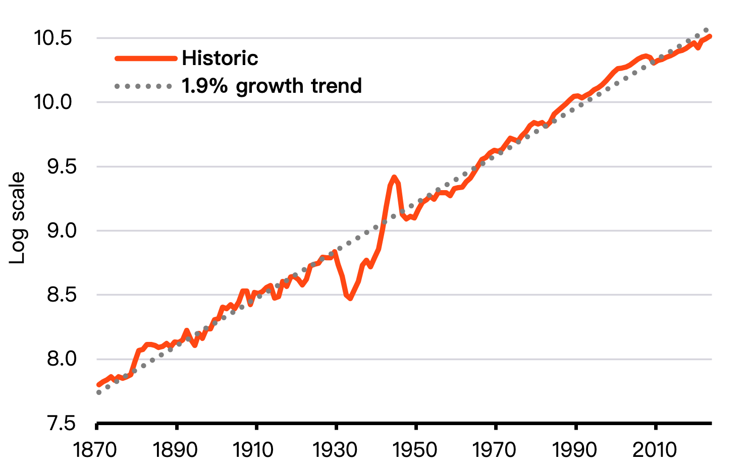 但这足以推动美国经济突破长期 2% 的趋势线吗?过去 150 年所有的重大创新 —— 包括蒸汽机、电力和数字革命 —— 都未能实现这一突破。然而,AI 或将使其首次成为可能。原因在于, AI 不仅自身是一项创新,更具备加速其他创新的潜力。 它不止于自动化任务,更可通过自我学习和迭代改进,从而加速创意生成和科学突破。