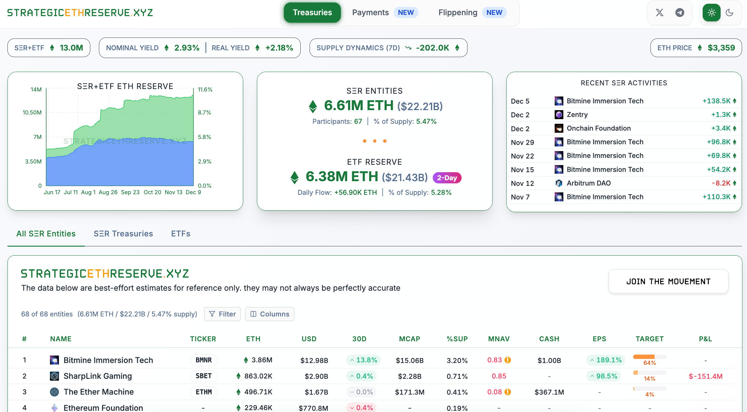 - Bitmine(BMNR) 以 386 万枚 ETH 持仓量高居榜首;