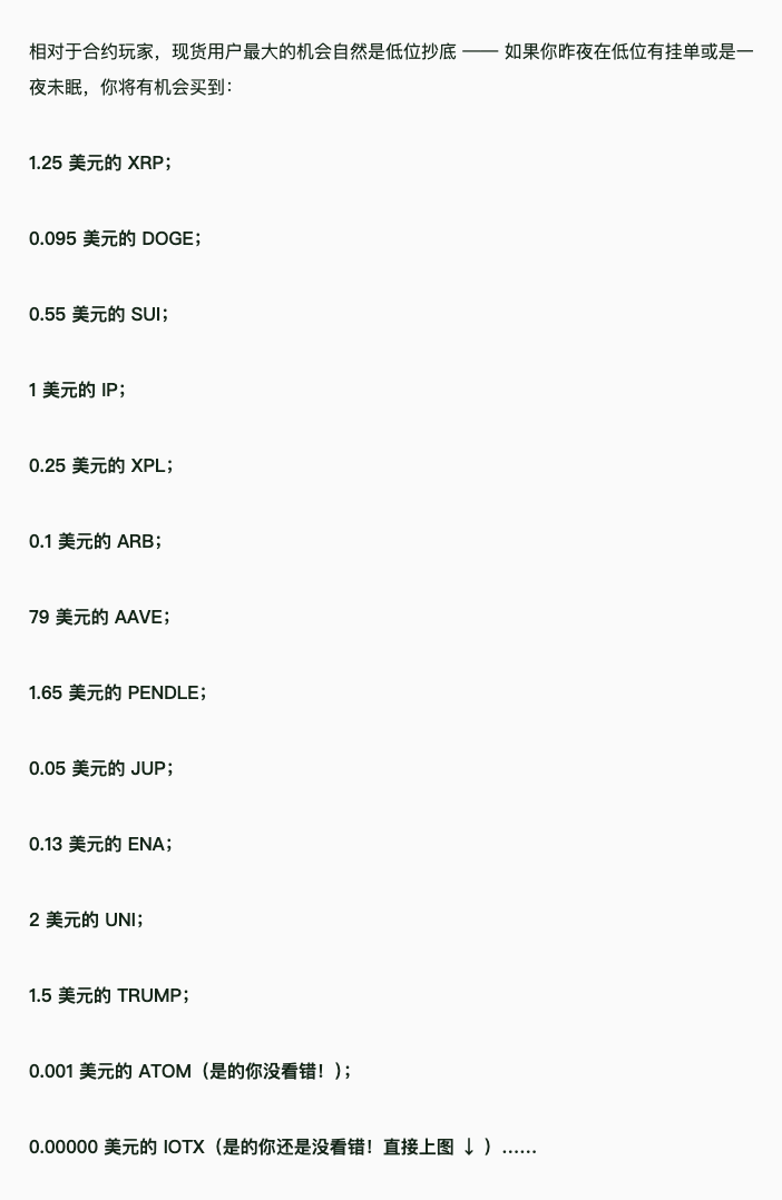 当然,风险中藏机遇。正如 Odaily星球日报在 《大暴跌中,谁人“刀口舔血”狂赚上亿?哪些暴富机会近在眼前?》 、 《加密史上最大爆仓日背后的巨鲸刺刀战:空军酒足,提刀离席》 等文中提及的各类“暴富机遇”——无论是高倍做空,还是低位抄底,不少人借此混乱赚到麻。