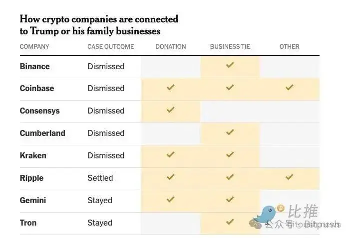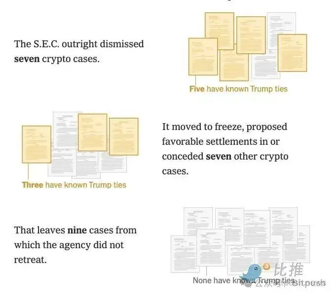 《纽约时报》调查发现,对于所有与特朗普家族加密业务存在关联、或曾为其政治事业提供资金支持的企业,该机构均已采取退让态度。目前SEC仅存的加密案件起诉对象,均为与特朗普无明显关联的不知名被告。