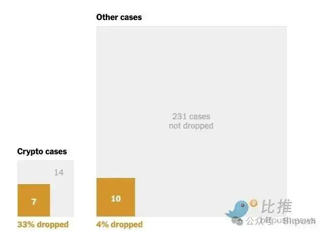 调查指出,这些案件撤诉的情况尤为异常。在特朗普任内,SEC对加密货币公司的撤诉率远高于其他类型的案件。