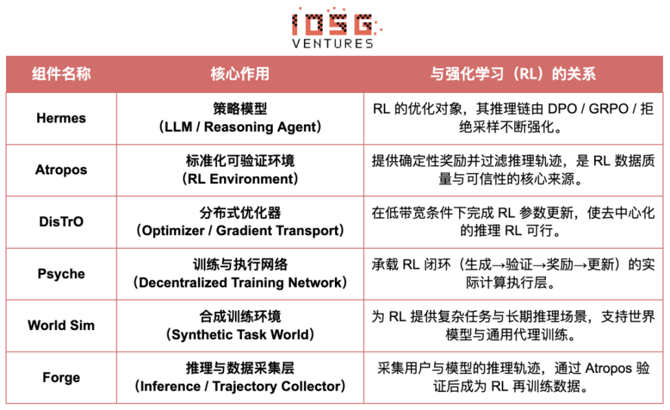在 Nous 的体系中, Atropos 验证思维链;DisTrO 压缩训练通信;Psyche 运行 RL 循环;World Sim 提供复杂环境;Forge 采集真实推理;Hermes 将所有学习写入权重。强化学习不仅是一个训练阶段,而是 Nous 架构中 连接数据、环境、模型与基础设施的核心协议,让 Hermes 成为一个 能在开源算力网络上持续自我改进的活体系统。