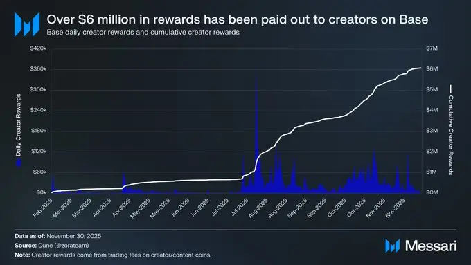 展望未来,用户还能够在Base App内直接为账户发行创作者代币,从而开辟另一条变现途径(该功能目前处于早期测试阶段)。在技术底层,创作者代币和内容代币都是基于Zora协议被代币化的。截至目前,创作者已通过Zora的代币化模式累计获得610万美元收益,自7月以来平均每月支付额达110万美元。