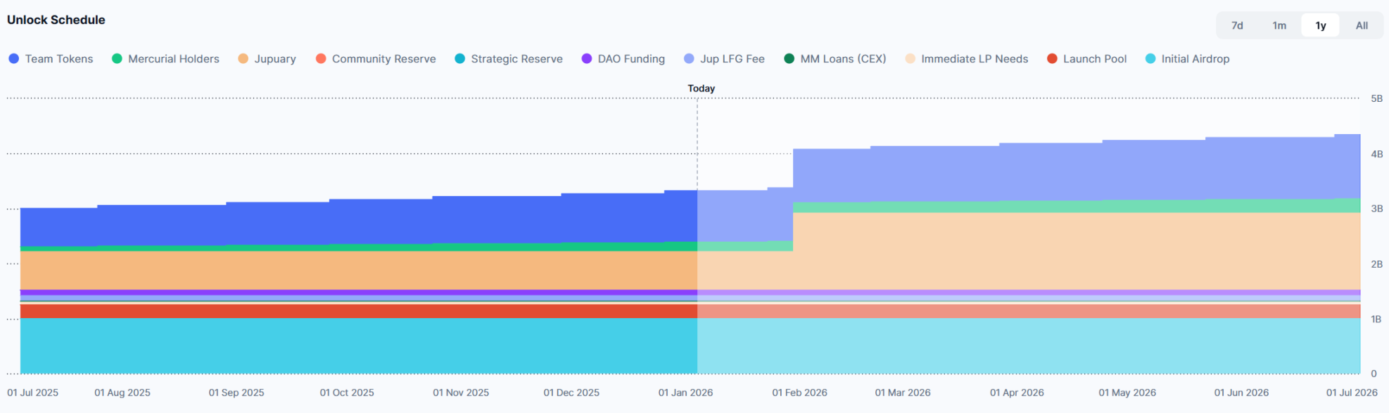 雪上加霜的是,今年 1 月 31 日,其将解锁 7 亿枚 JUP(最大供应量 10% 的代币),价值 1.4788 亿美元。当买盘衰弱,卖盘巨大时,币价可想而知。