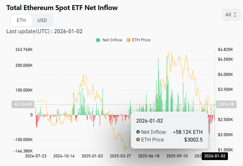 进入2026年,加密市场总市值重返3万亿美元以上,比特币主导率短暂跌破60%,引发市场对"山寨季"的讨论。以太坊正站在关键转折点。短期已突破3200美元,相比2025年底的低点实现了显著反弹。虽然相较2025年9月4700美元的高点仍有34%的距离,但多个早期信号显示,ETH可能正在酝酿一场结构性行情。