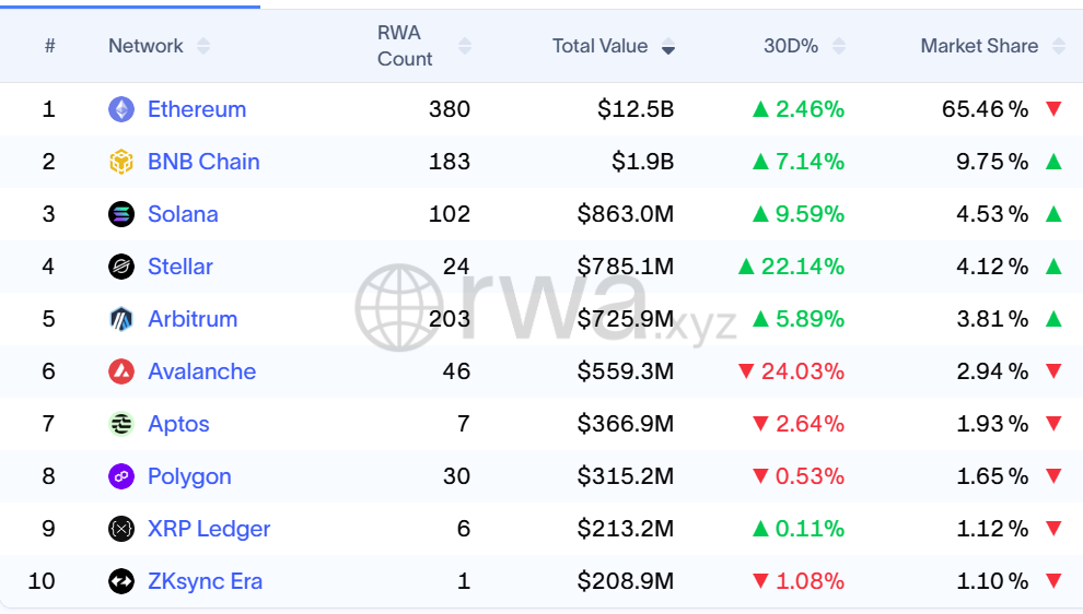 据RWA.xyz最新统计,以太坊链上代币化资产TVL达125亿美元,市场份额65.5%,远超BNB Chain的20亿美元、Solana和Arbitrum的各不足10亿美元。BlackRock、JPMorgan等华尔街巨头已大规模上链代币化国债、私人信贷和基金产品。2025年RWA市场增长超212%,总规模突破125亿美元,而机构调研显示76%的资管公司计划在2026年前投资代币化资产。