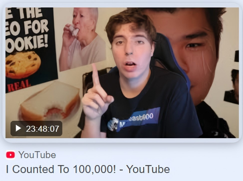 MrBeast的首次成功“起号”发生在2017年1月,他上传了一段自己数到10万的视频,迅速走红网络,几天内就获得了数万次的点击量。看到该模式奏效后,MrBeast找到了他初代版流量密码——极端挑战、情绪刺激和可传播噱头。随后他又将数字数到20万,连续24小时转动指尖陀螺,连续10个小时观看歌曲MV。他从大学辍学,全身心投入到YouTube的运营中。