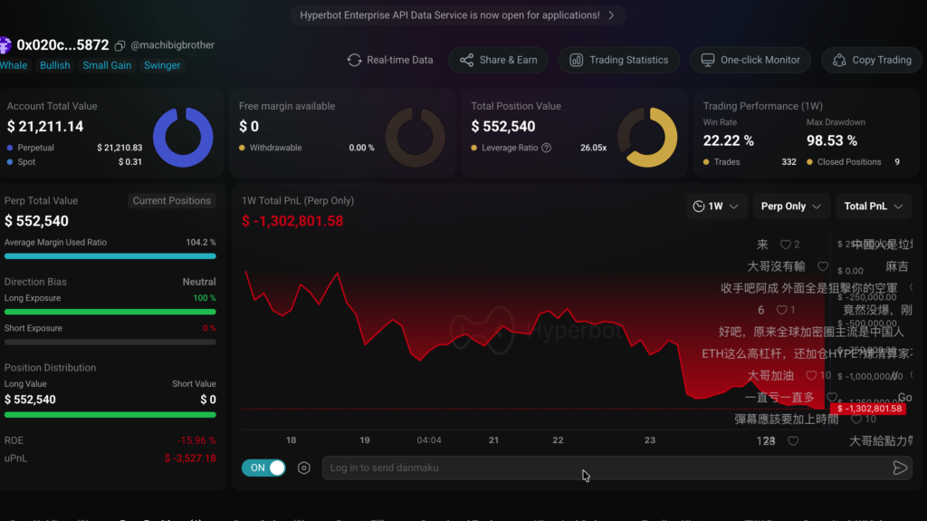 No One Literary No One but Machi @machibigbrother got completely liquidated on his $ETH (25x) long position and overall he is now losing ~29M. https://t.co/g1yQzBPSb2 pic.twitter.com/KPBSj85TnB