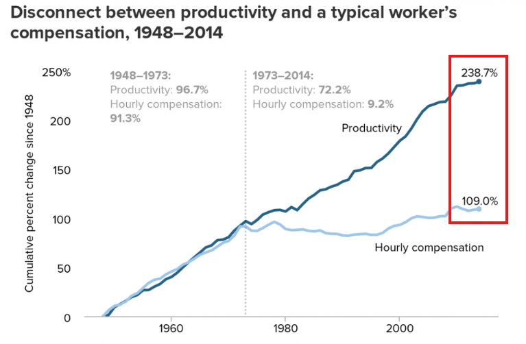 这或许可以解释为什么在过去 70 多年里,生产力的表现一直优于工资增长。