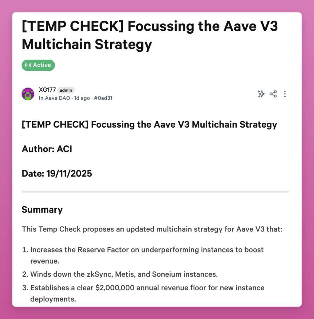 Aave 最近也投票关停了几条链上的服务,理由同样是亏钱运行。