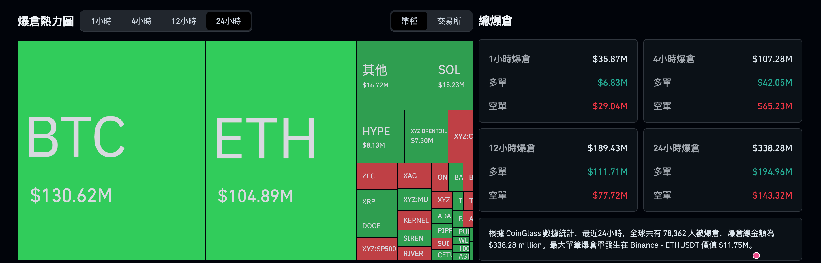 超 7.8 萬人遭清算,爆倉金額達 3.36 億美元