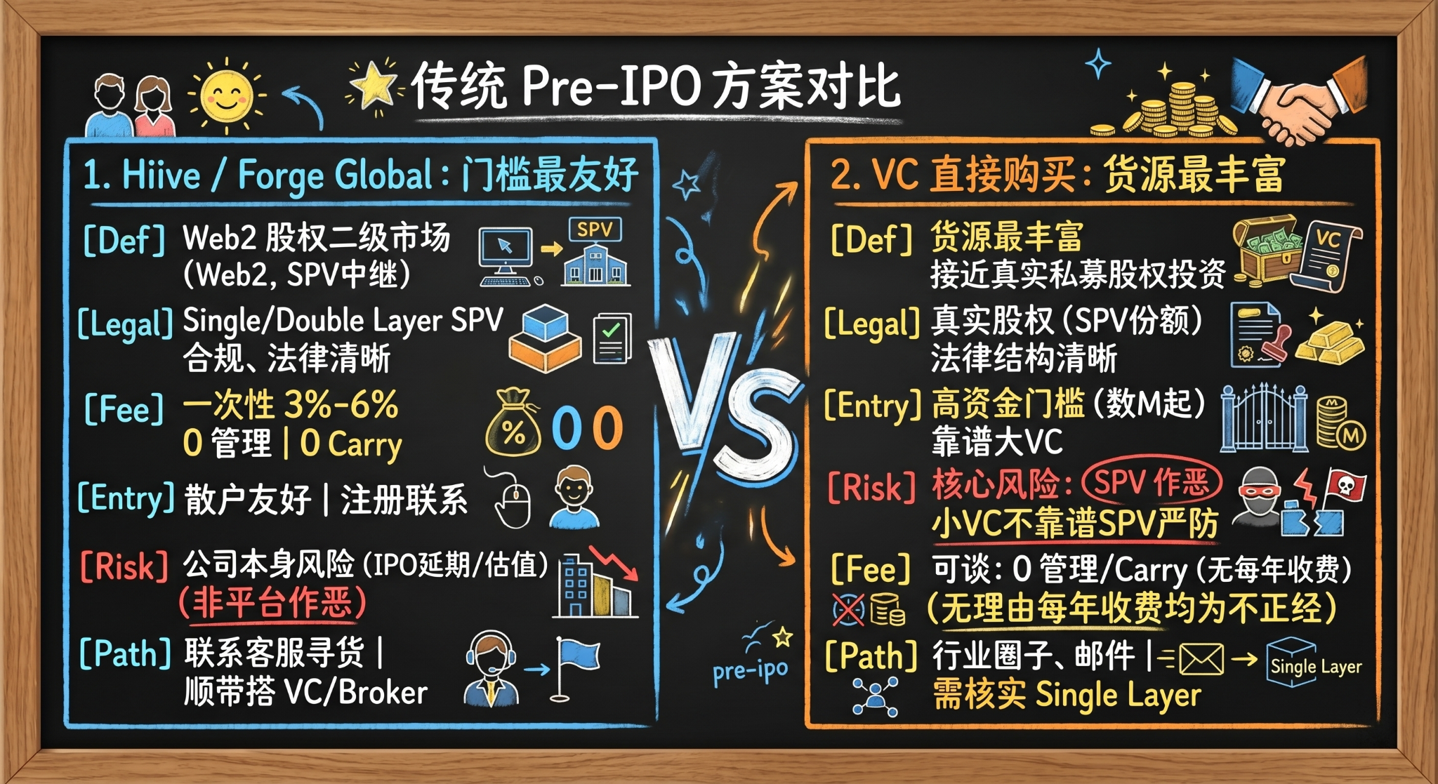 ? 最后提醒: Pre-IPO 不是包赚不赔。IPO 延期、估值下调、流动性枯竭是常态。搞清楚自己买的是什么,找到匹配自己资金量的路径,剩下的交给时间。