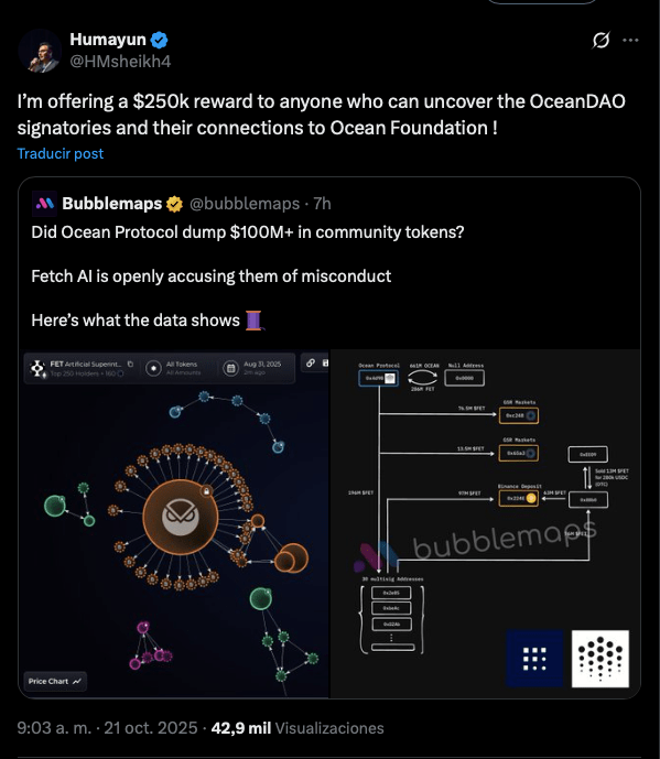 Fetch.AI CEO Offers Reward To ‘Uncover’ Ocean Protocol’s Alleged $120M FET Dump