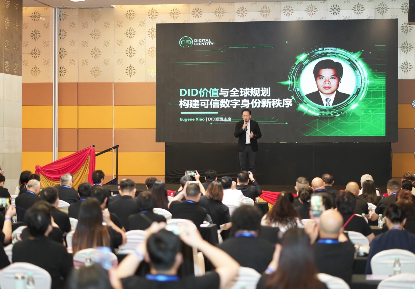 大会在DID联盟主席 Eugene Xiao 的主题演讲中拉开帷幕。针对当前互联网面临的信任缺失、AI造假及数据泄露等挑战,Eugene 在《DID价值与全球规划》中提出了DID的战略定位。