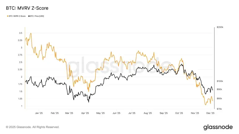 MVRV Z-Score目前位于1.17。它已脱离价格便宜区间,但尚未大幅攀升。由于买方和卖方力量交织,此处的增长速度正在放缓。当前趋势疲软且方向不明。