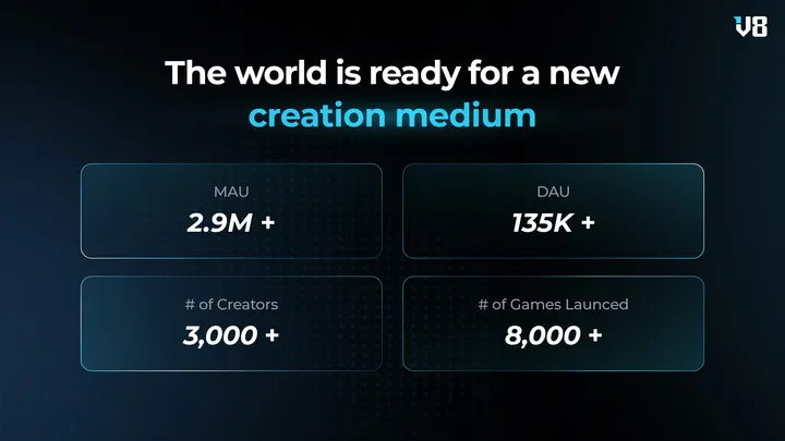 Verse8 是一个 AI 原生创作层,可将你的想法转化为交互式游戏和故事,每一项创作都可被拥有、再创作,并持续累积价值。正如 OpenAI 从聊天切入、Runway 以视频崛起、Stability 以图像为突破口一样,Verse8 以最具代表性的形式开启:交互式内容。游戏只是这一新媒介最先闪光的垂直领域。我们相信,创作应该面向所有人,而不仅仅是开发者。