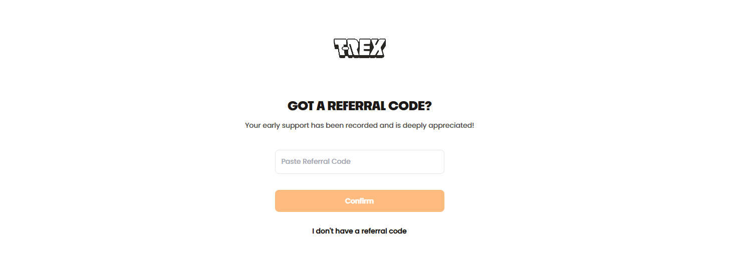 STEP 1. 进入交互网站(链接: https://www.trex.xyz/auth/portal-login ),创建账号,并输入邀请码 7DMAZO4Z 进入。