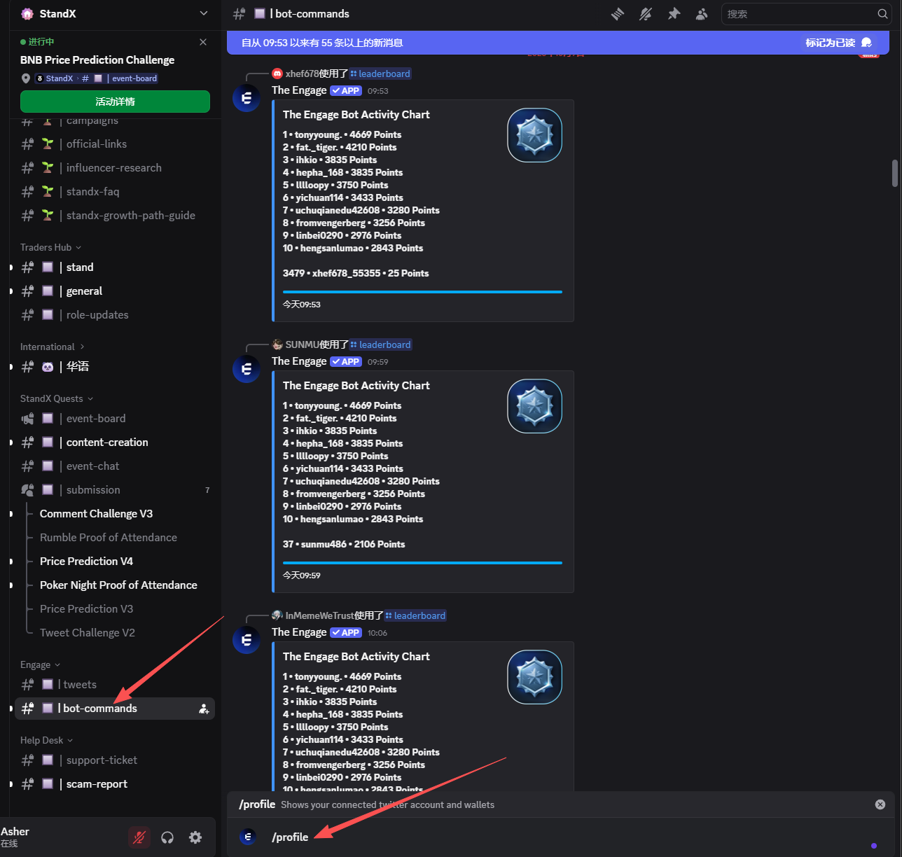 STEP 4. 在“bot-commands”子频道中,输入 /profile 可查看个人积分。