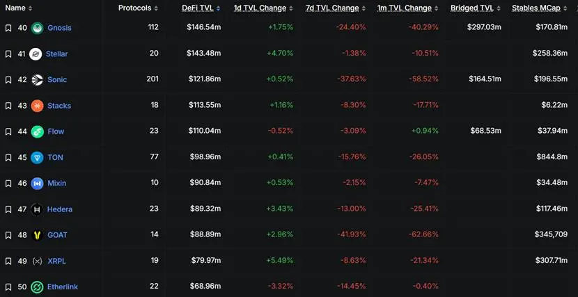 XRPL 公链方面,作为 Ripple 的技术核心,其已服务全球 500 多家金融机构,年化交易量接近 950 亿美元。 XRPL 近期升级引入 EVM 兼容侧链,并与 Polygon CDK 合作,提升了智能合约功能。 XRPL DeFi 生态相对滞后, DefiLlama 数据显示, XRPL DeFi TVL 7959 万美元(排名第 49 ,远不及 Solana 101 亿美元和以太坊 747 亿美元等主流公链。