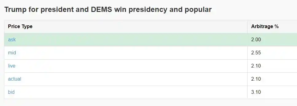 套利 2:押注川普當選,並用「民主黨贏得普選票+贏得總統職位」進行對沖