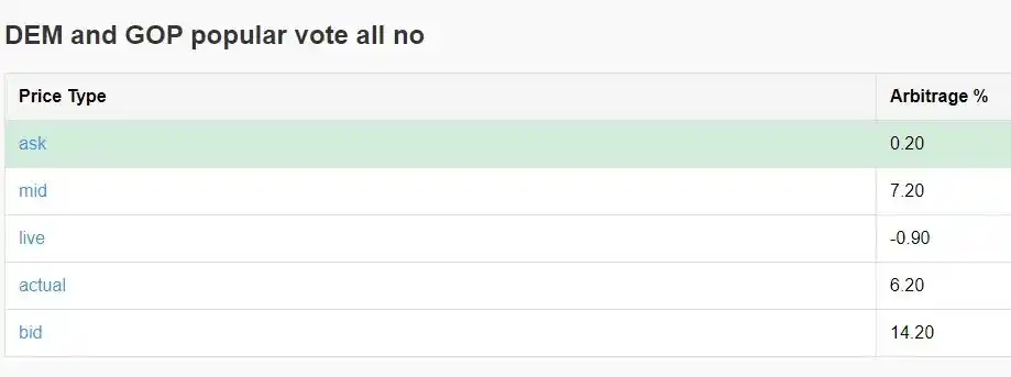 套利 3:買入民主黨與共和黨普選票所有結果的「No」