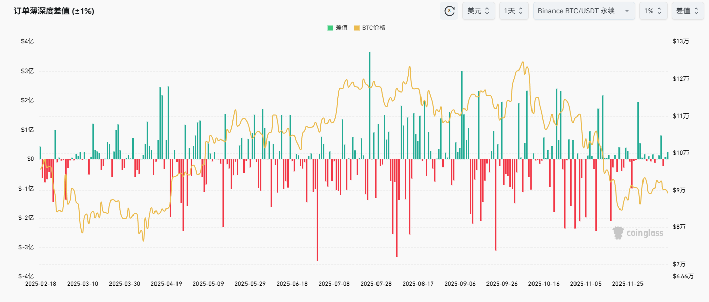 对此,PANews试图透过盘口深度、期权市场以及稳定币等几个数据,来解析当下市场的资本格局。最终的结论是:市场似乎并未迎来真正的复苏,而是陷入了一种流动性持续衰减、机构资金加速防御的结构性分裂状态。