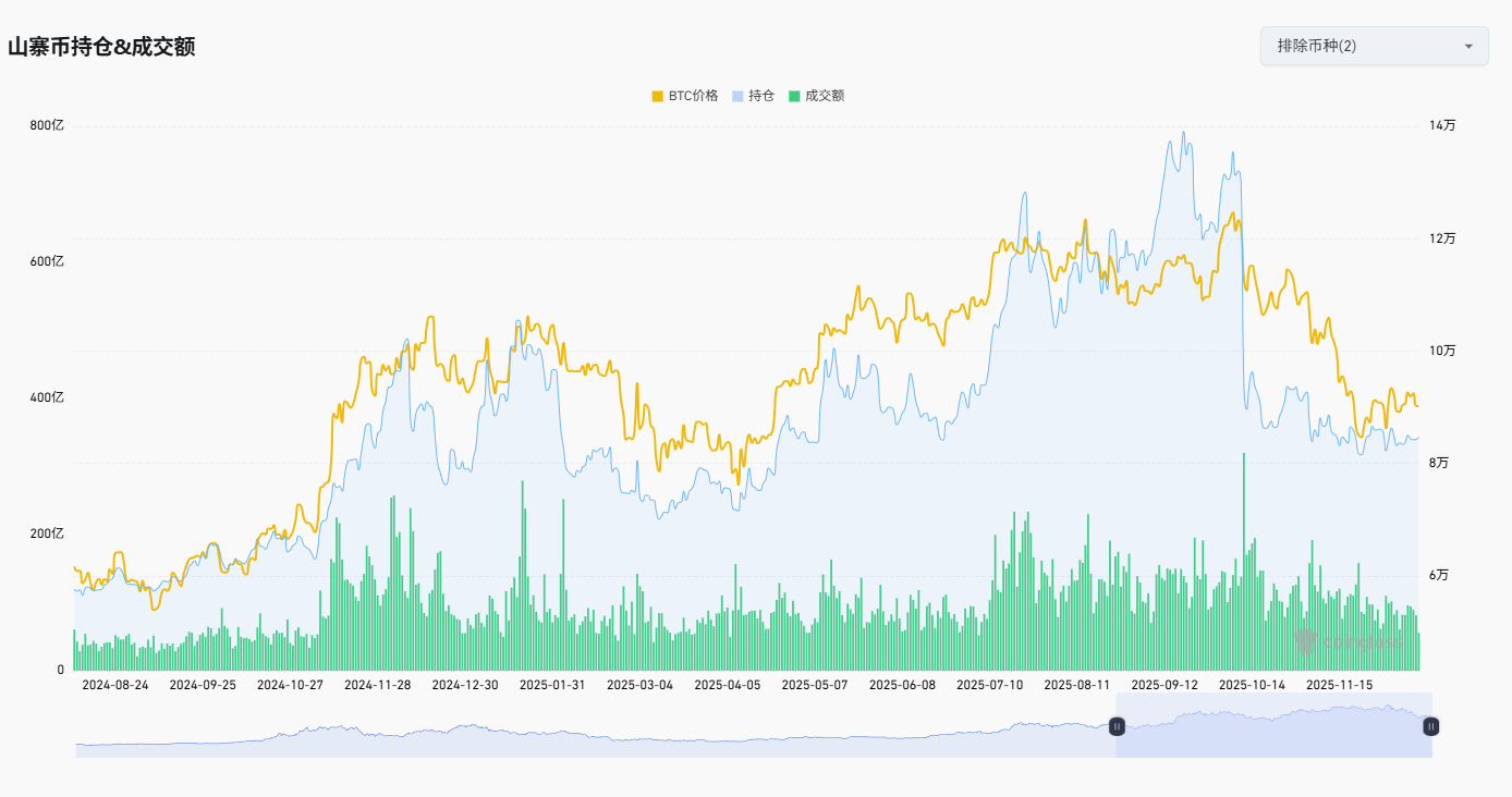 与此同时,山寨币期货市场的成交量也处于萎缩状态,并未出现抄底引发的的成交量明显增长现象。这些数据来看,山寨币的市场进入到一种无人问津的状态。